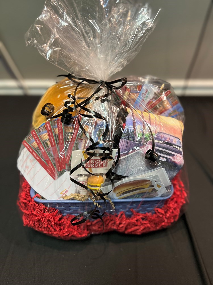 (10) meal cards (1) In n out t-shirt (1) In n out insulated cup (1) burger plush Note pad, stickers, pen